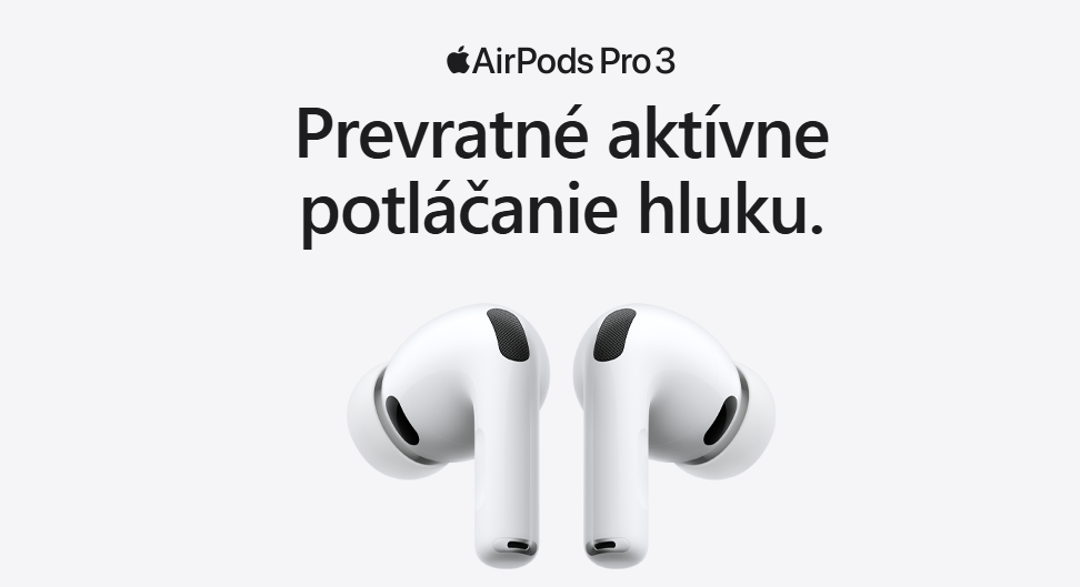 AirPods Pro 3. Až dvakrát lepšie aktívne potláčanie hluku než AirPods Pro 2. Teraz so snímaním srdcovej frekvencie, dlhšou výdržou batérie a pokročilými funkciami na ochranu zdravia sluchu. A s novým dizajnom, ktorý lepšie sedí.