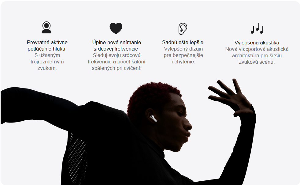 PRELOMNÝ ZVUKOVÝ VÝKON— Zažite úchvatný trojrozmerný zvuk s AirPods Pro 3. Nová akustická architektúra prináša transformované basy, detailnú čistotu, takže počujete každý nástroj, a úžasne živé vokály.