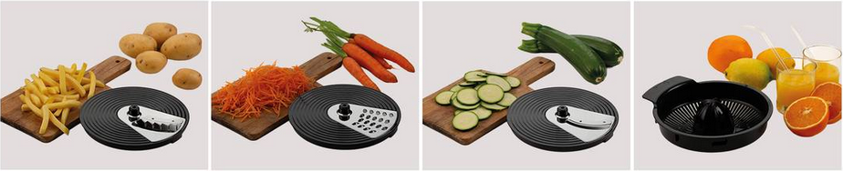 Sada troch vymeniteľných antikorových diskov na krájanie a strúhanie je spoľahlivým pomocníkom pre každého, kto ocení rýchlu, presnú a pohodlnú prípravu surovín. Disky sú vyrobené z kvalitnej antikorovej ocele, ktorá zaručuje odolnosť, ľahkú údržbu aj jednoduchú manipuláciu. Vďaka tomu sú ideálne tak na bežné varenie, ako aj na prípravu náročnejších jedál. Súčasťou výbavy je aj praktický lis na citrusy, ktorý vám umožní jednoducho pripraviť čerstvú šťavu z citrónov, pomarančov alebo grapefruitov. Bez zbytočnej námahy a kvapiek navyše.