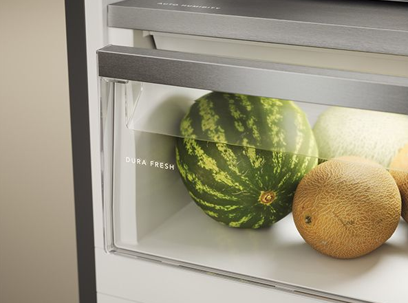 Zásuvky Dura Fresh vytvárajú ideálnu mikroklímu pre rôzne druhy potravín. Suchá zásuvka je ideálna pre ryby, mäso a mliečne výrobky, zatiaľ čo zásuvka s automatickým riadením vlhkosti je určená na ovocie a zeleninu. Každá zásuvka má vlastné teplotné nastavenie nezávislé od zvyšku chladničky, takže uchová potraviny dlhšie čerstvé a chutné.