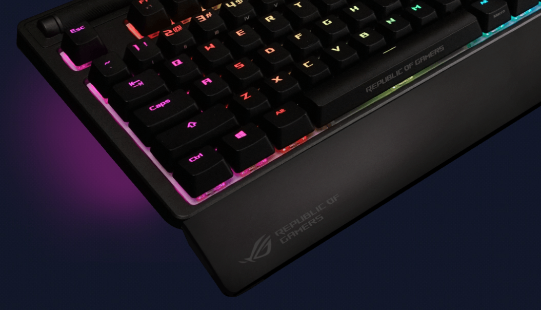 Získajte extra podporu a pohodlie s polstrovanou opierkou zápästia alebo, ak ju nepotrebujete, jednoducho ju odpojte od klávesnice. Tato opierka dokonale zapadne do nenápadnej drážky v dolnej časti klávesnice, takže Strix Flare vypadá s opierkou rovnako dobre ako bez nej.