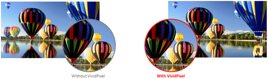 Technológia VividPixel vylepšuje kontúry, ostrosť a sýtosť farieb obrazov a videozáznamov a prináša tak kvalitný vizuálny zážitok.