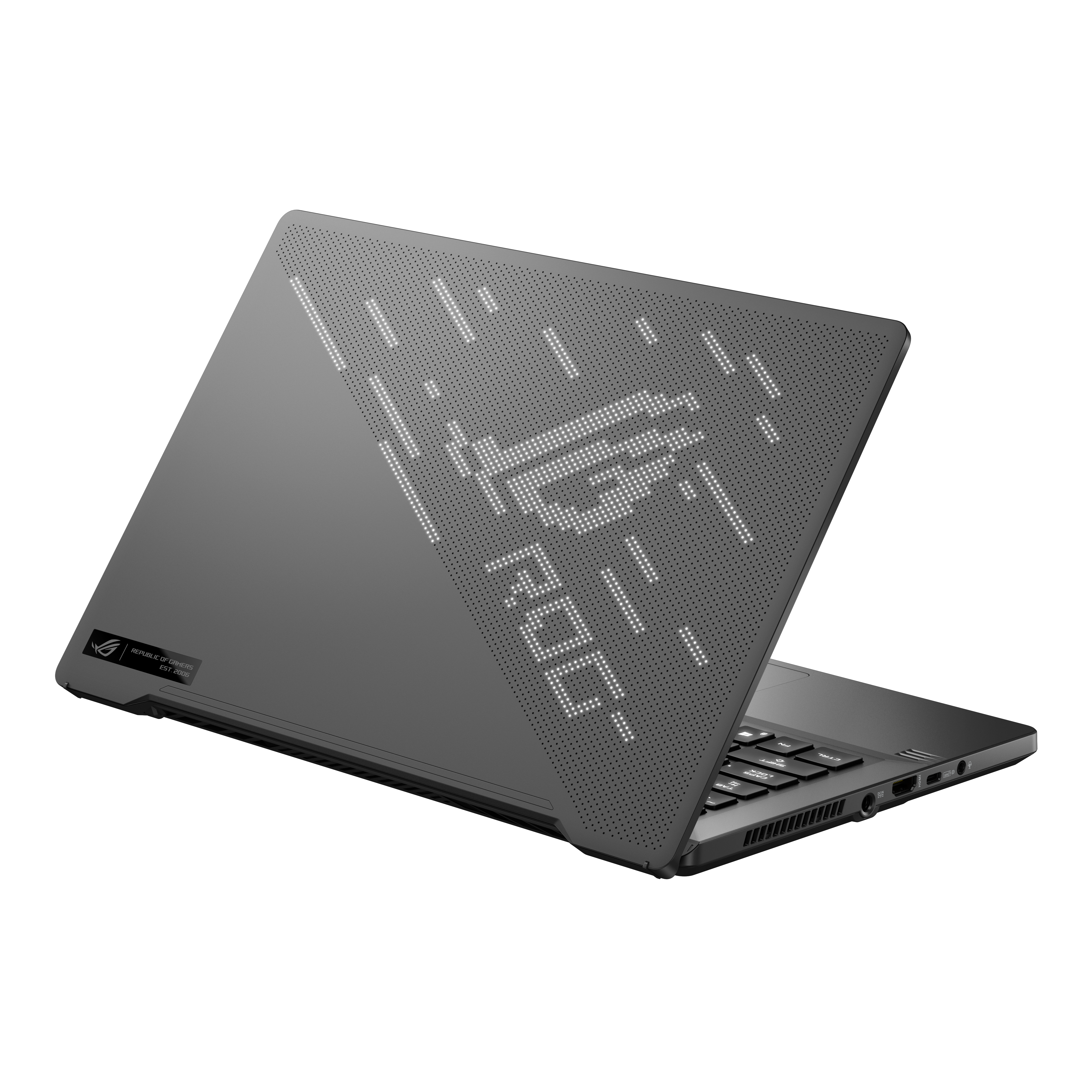 Dynamický ROG Zephyrus G14 je prvý 14-palcový herný notebook, ktorý je navrhnutý tak, aby naplno využil výkonnú grafickú kartu NVIDIA GeForce RTX a 8-jadrový procesor AMD Ryzen™. ROG Zephyrus G14 ponúka vysoký výkon a tenké a kompaktné šasi, vďaka ktorému umožňuje používateľom, aby pracovali, hrali sa a tvorili kdekoľvek. Voliteľný ROG AniMe Matrix™ displej rozširuje možnosti personalizácie a umožňuje používateľom prehrávať vizuálne efekty alebo nápisy na veku notebooku.
