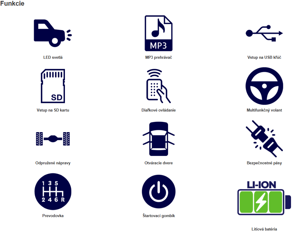 •Multifunkčný volant - S tlačidlami na ovládanie klaksónu a prepínanie hudby.