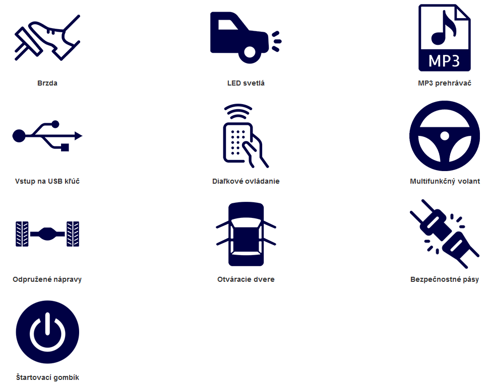 Multimediálna výbava: Mp3, USB, SD karta, ovládanie na volante