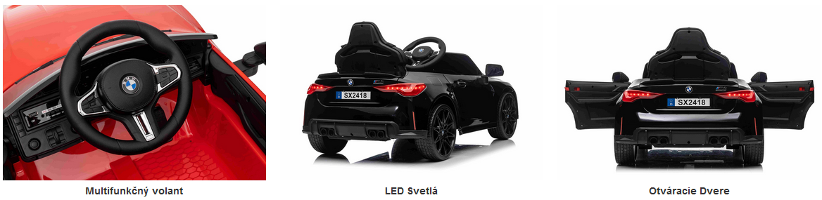 Popis produktu BENEO BMW M4, čierne, 2,4 GHz dialkové ovládanie, USB / Aux Vstup, odpruženie, 12V batéria, LED Svet