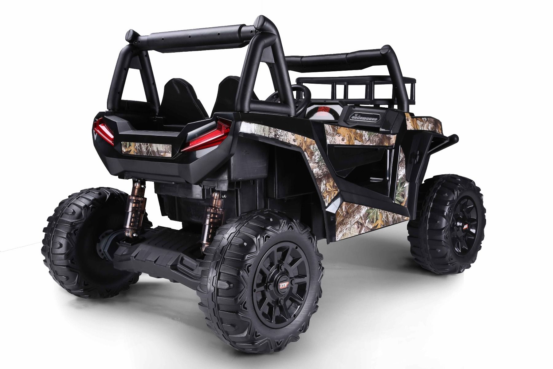 Autíčko UTV má mohutný vzhľad, otváracie dvere, 2 úložné priestory, kvalitné materiály a spracovanie. Má dve koženkové sedačky, čím je vhodný pre dve deti.