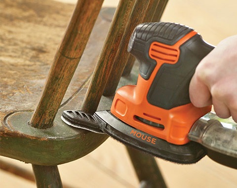 Prepracovali sme originálnu BLACK+DECKER vibračnú brúsku Mouse na silnejšiu a kompaktnejšiu. Teraz môžete ľahko renovovať starý nábytok.