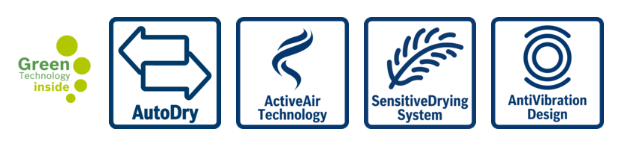 - Systém šetrného sušenia SensitiveDrying kombinuje prúdy teplého vzduchu a jemnú štruktúru bubna pre suché oblečenie.