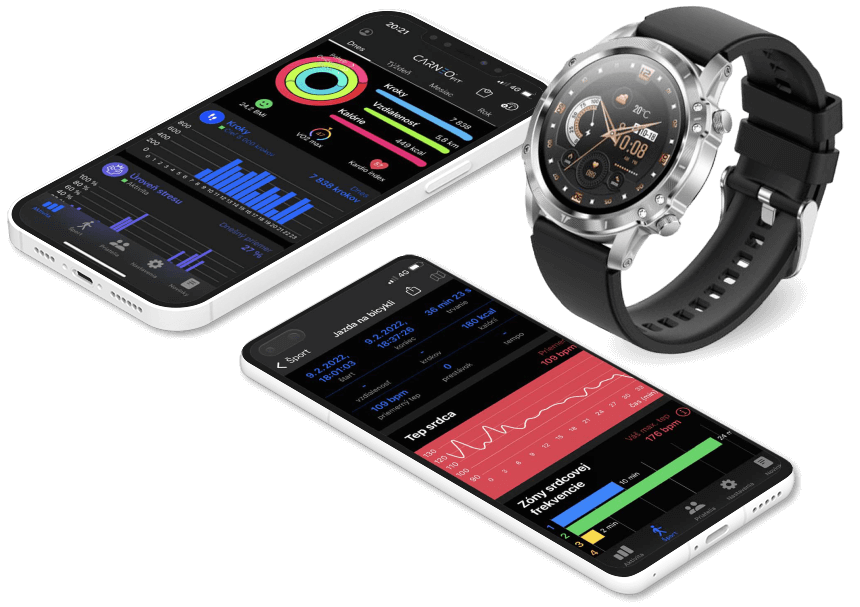 -Všetky dôležite informácie sa zobrazujú na IPS displeji, ale aj Vo Vašom smartfóne (hodinky sú kompatibilné so systémami Android a iOS).