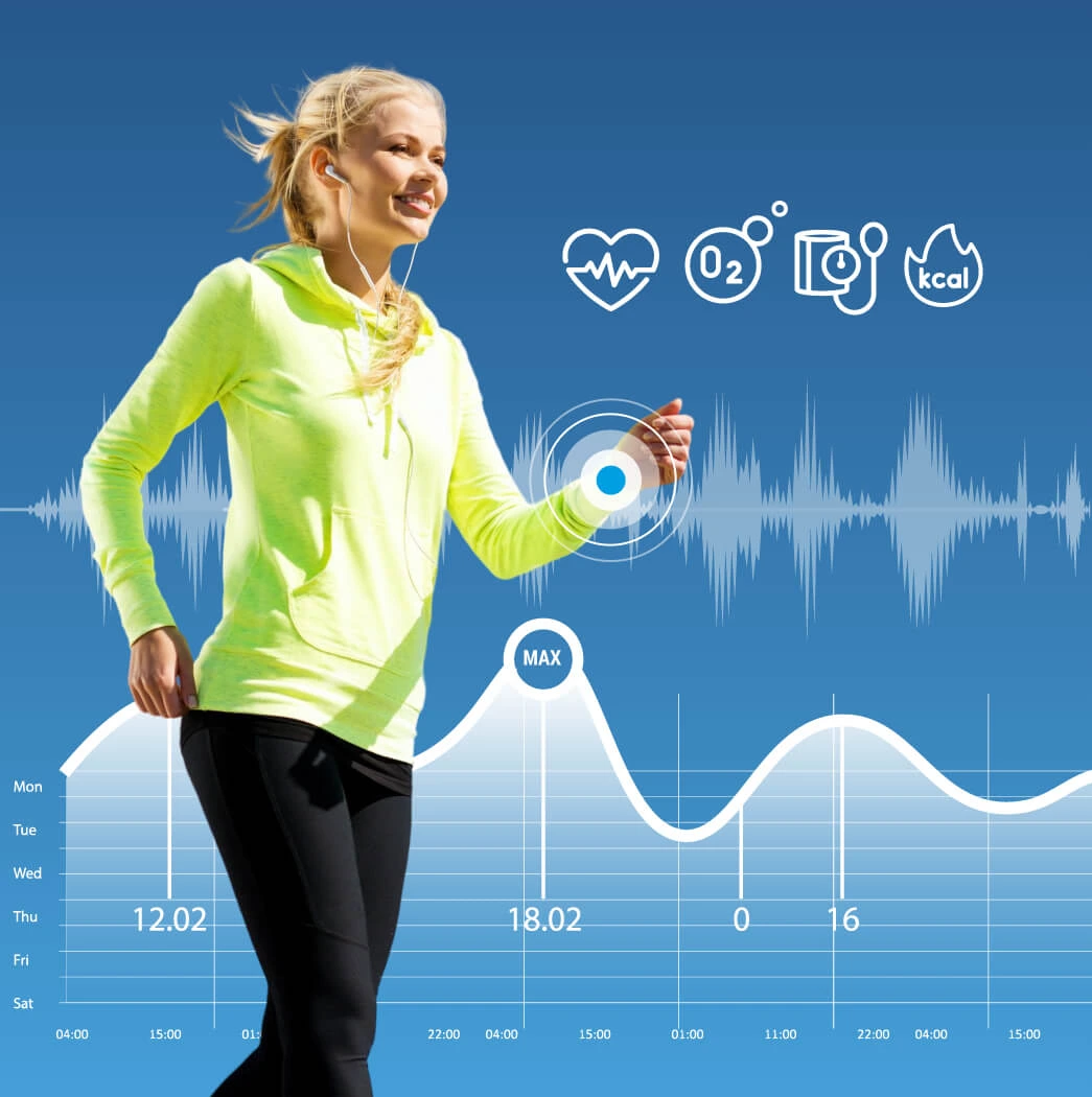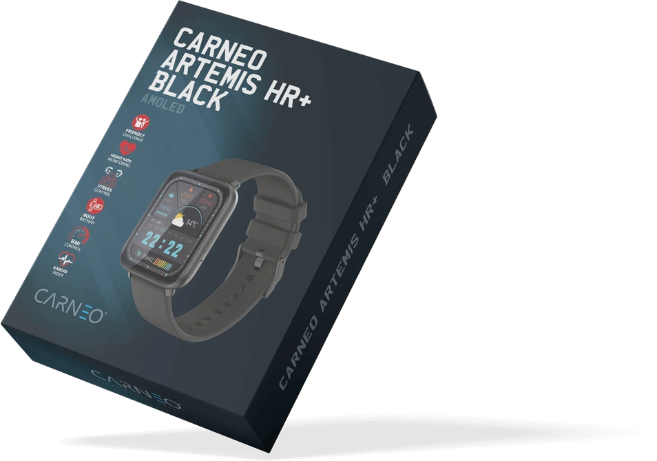 Moderné fitness hodinky Carneo Artemis HR+ disponujú AMOLED displejom, ktorý je možné aktivovať jednoduchým otočením ruky. Umožňujú meranie krvného tlaku, okysličenia krvi, srdcového tepu, prejdenej vzdialenosti, monitorovanie spálených kalórií či kvality spánku. Ich súčasťou je 250 mAh batéria s výdržou cca 2-3 dni. Podľa certifikácie IP67 sú odolné voči vode a prachu. Hodinky aj aplikácia sú kompletne v slovenčine, takže si budete určite spolu dobre rozumieť. Hodinky s podporou technológie Bluetooth sú kompatibilné s operačným systémom iOS a Android. Silikónový náramok je príjemný na dotyk a zaručuje komfort počas celého dňa.