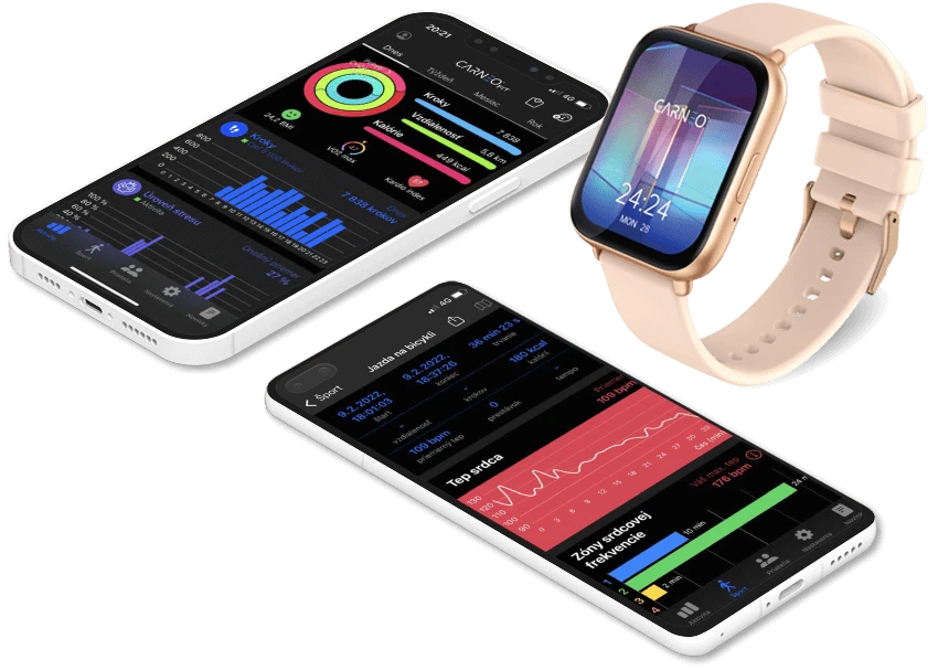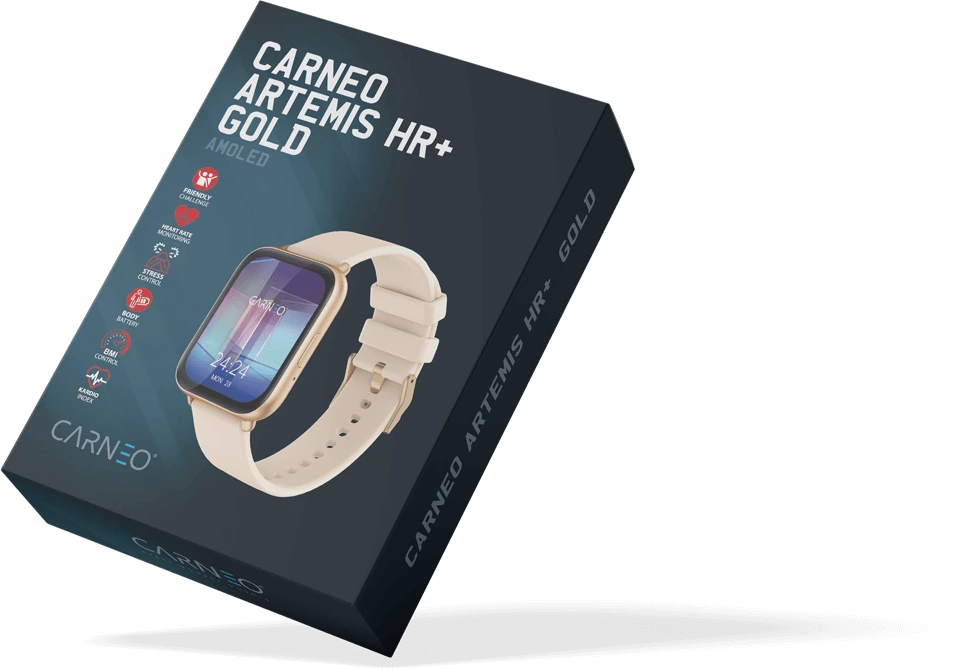 Moderné fitness hodinky Carneo Artemis HR+ disponujú AMOLED displejom, ktorý je možné aktivovať jednoduchým otočením ruky. Umožňujú meranie krvného tlaku, okysličenia krvi, srdcového tepu, prejdenej vzdialenosti, monitorovanie spálených kalórií či kvality spánku. Ich súčasťou je 250 mAh batéria s výdržou cca 2-3 dni. Podľa certifikácie IP67 sú odolné voči vode a prachu. Hodinky aj aplikácia sú kompletne v slovenčine, takže si budete určite spolu dobre rozumieť. Hodinky s podporou technológie Bluetooth sú kompatibilné s operačným systémom iOS a Android. Silikónový náramok je príjemný na dotyk a zaručuje komfort počas celého dňa.