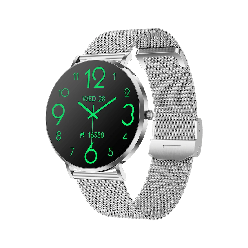 Luxusné fitness smart hodinky Carneo Phoenix HR+ 2nd gen. v elegantnom striebornom prevedení disponujú okrúhlim SUPER AMOLED HD farebným displejom z rozlíšením až 466 x 466. Umožňujú meranie srdcového tepu, stresu, BMI, prejdenej vzdialenosti, monitorovanie spálených kalórií či kvality spánku. Ich súčasťou je 200mAh batéria s výdržou 3 až 5 dní. Podľa certifikácie IP68 sú odolné voči vode a prachu. Sú kompatibilné s operačným systémom iOS a Android. Hodinky majú milánsky, kovový remienok v striebornej farbe, ktorý je možné vymeniť za viacfarebný nylónový, či silikónový a tým pádom zmeniť hodinkám manažérsky vzhľad za športový. Vkusný, jednoduchý a luxusný dizajn sa ľahko kombinuje k obleku či voľnočasovému outfitu. Hodinky aj aplikácia sú kompletne v slovenčine, takže si budete určite spolu dobre rozumieť.