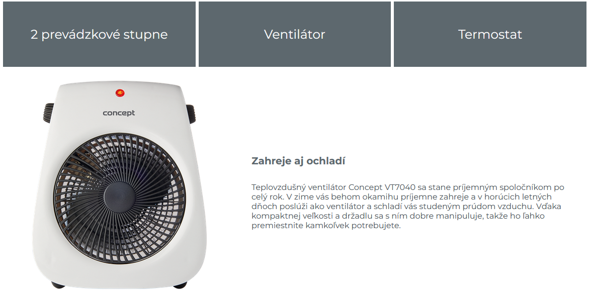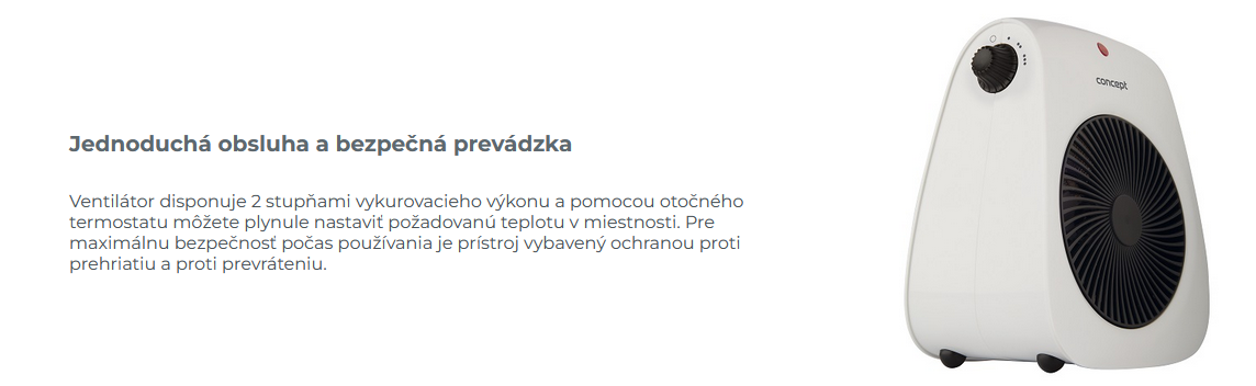 2 stupne nastavenia vykurovacieho výkonu 1000/2000 W
