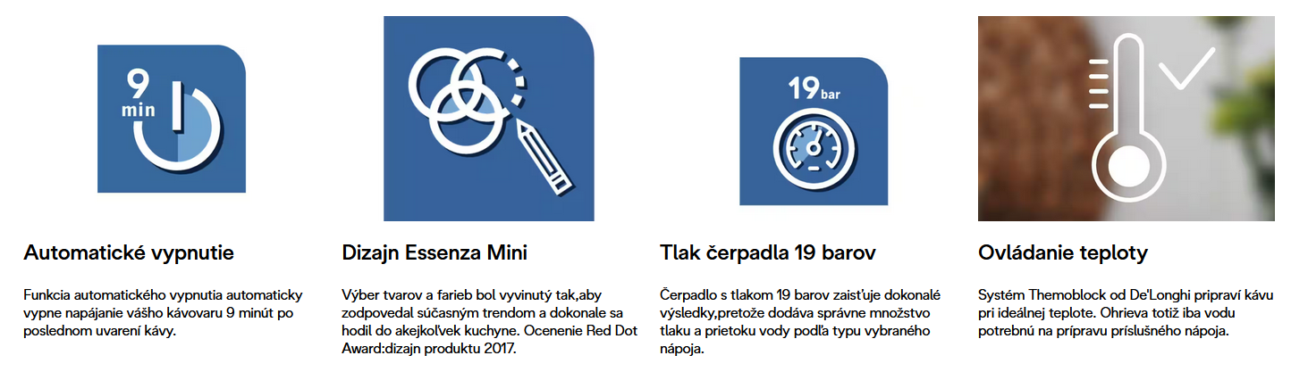 - Získajte svoju obľúbenú kávu okamžite vďaka kávovaru Essenza Mini, ktorý sa ľahko používa a rýchlo sa zohrieva