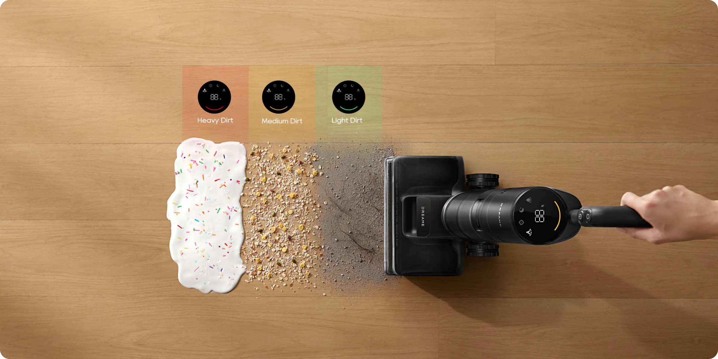 V inteligentnom režime tento inteligentný vysávač upravuje sací výkon a výkon vody podľa detegovaného neporiadku, takže sa nemusíte starať o výber správneho nastavenia.