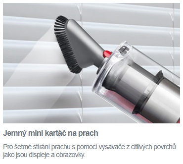Jemné štetiny kefy šetrne odstraňujú prach a alergény z povrchu nábytku, žalúzií apod. a sú ihneď nasávané do vysávača.