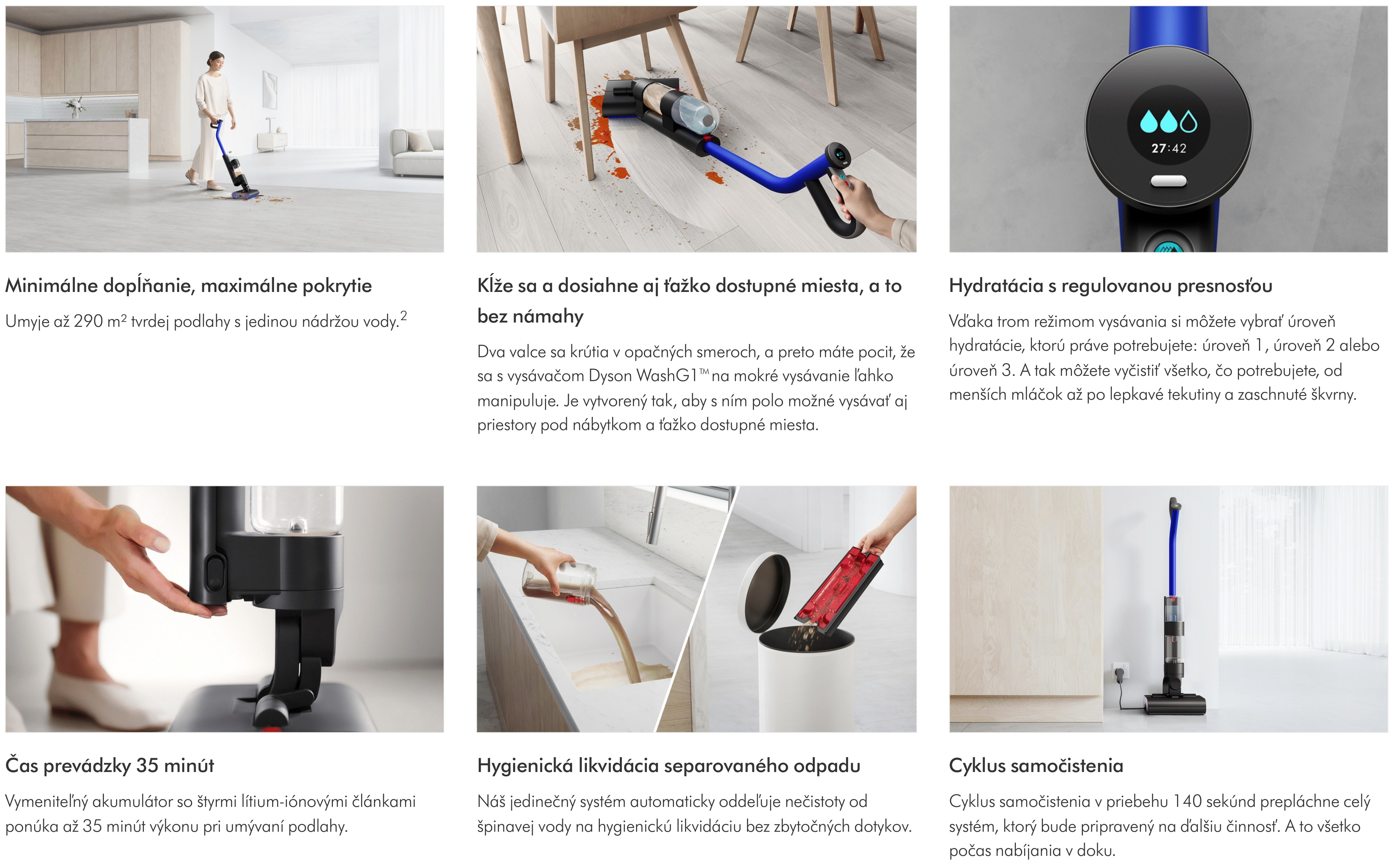 Vysávač Dyson WashG1™ na mokré vysávanie predstavuje výkonné riešenie na odstránenie nečistôt, rozliatych/rozsypaných materiálov a odolných škvŕn.
