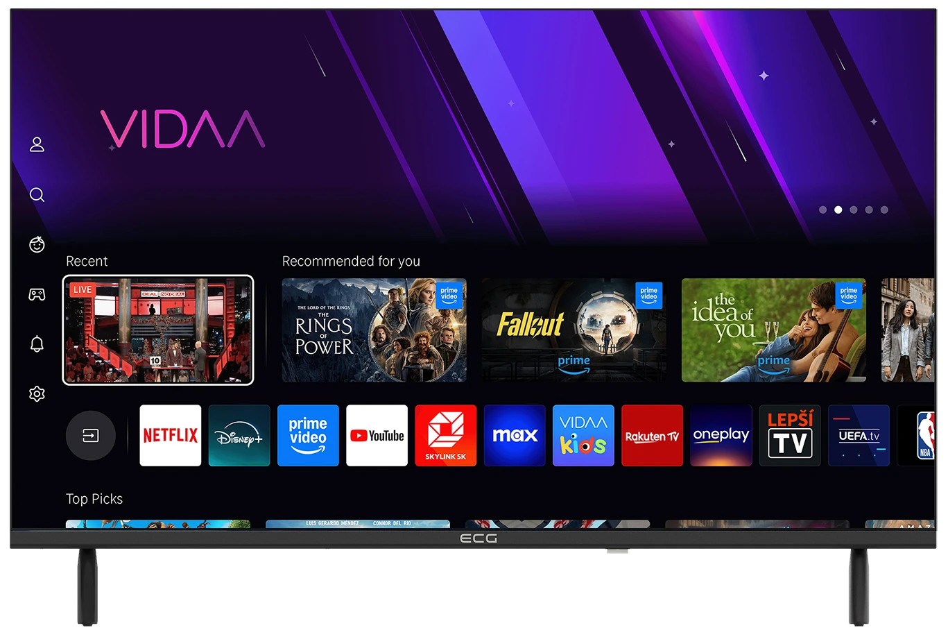Srdcom televízie ECG 32 FSV252 je vyspelý operačný systém VIDAA U9, ktorý vás nadchne v mnohých ohľadoch. Štartuje niekoľko sekúnd a aj potom funguje krásne svižne. Tiež prináša prehľadné menu, v ktorom sa bez problémov zorientujete. A hlavne vám otvára dvere k celému radu obľúbených streamovacích platforiem a ďalších šikovných služieb. Podporovaný je Netflix, YouTube, Disney+, Amazon Prime Video, a dokonca aj slovenské aplikácie ako Oneplay, Skylink Live TV, Lepšie.TV, Sledovanie TV a mnoho ďalších.