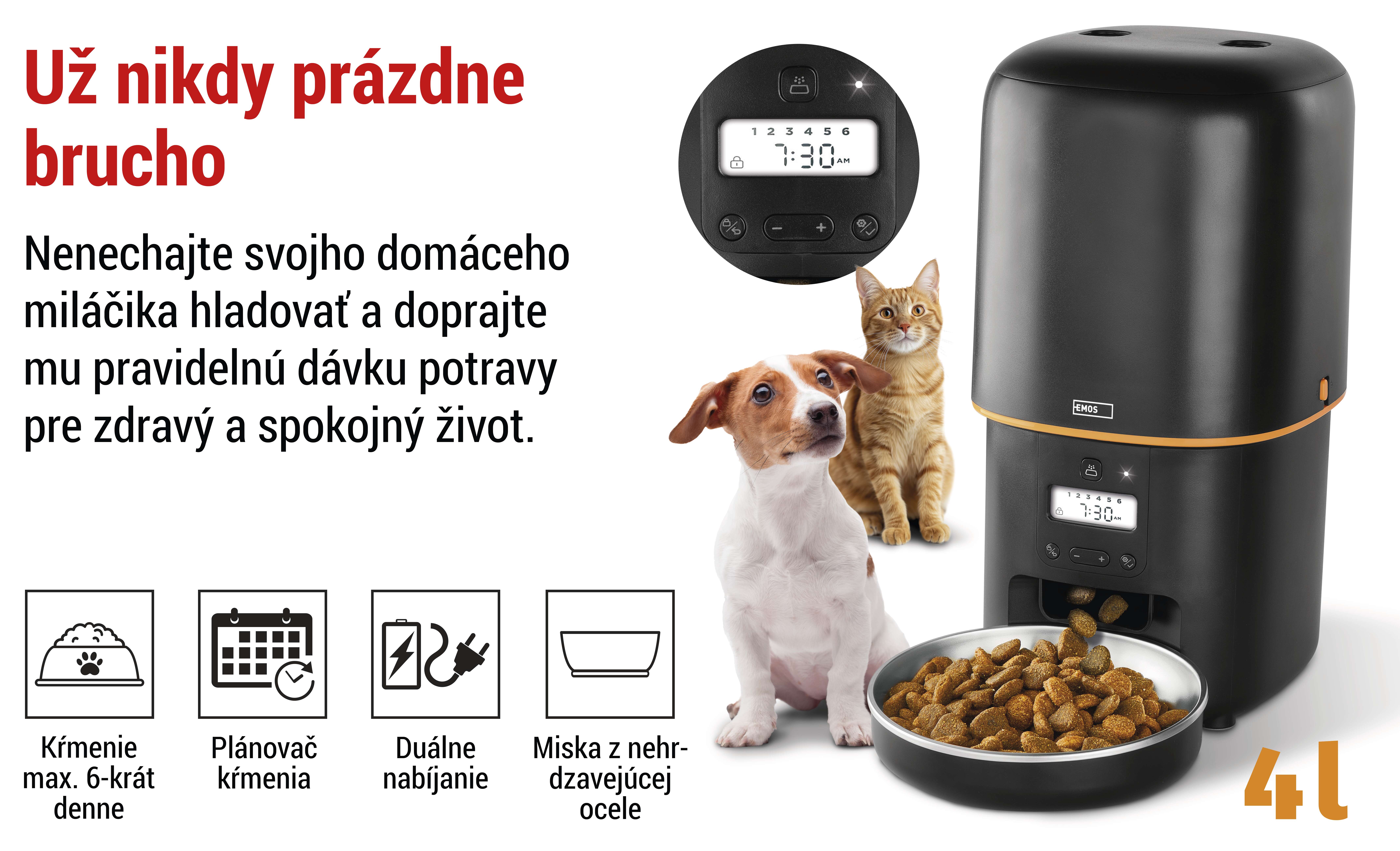 Popis produktu Emos Dávkovač krmiva Pet Care, 4l čierny