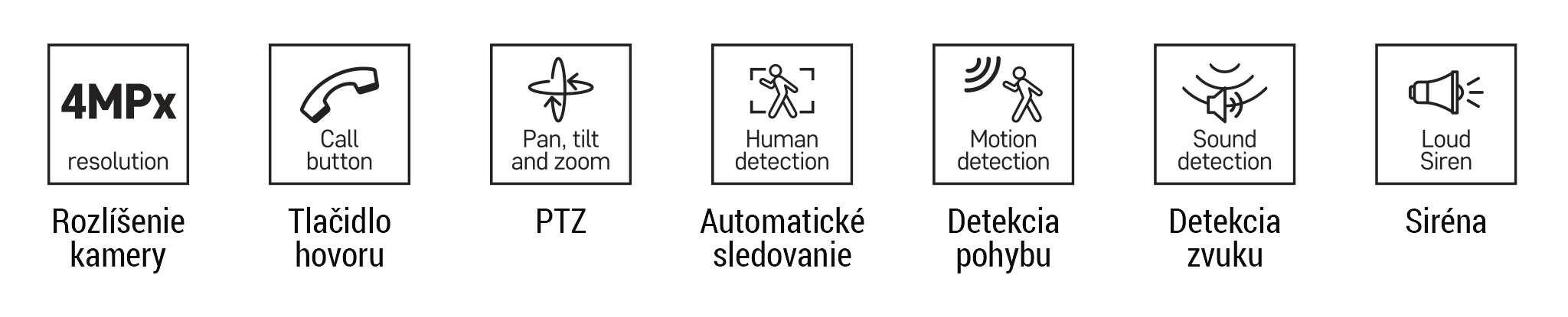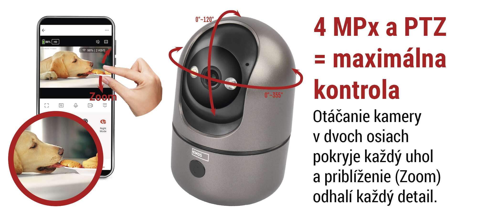 - Funkcia PTZ (otočenie a priblíženie kamery v dvoch osiach) – otočte a priblížte kameru podľa potreby pre komplexné pokrytie sledovanej oblasti