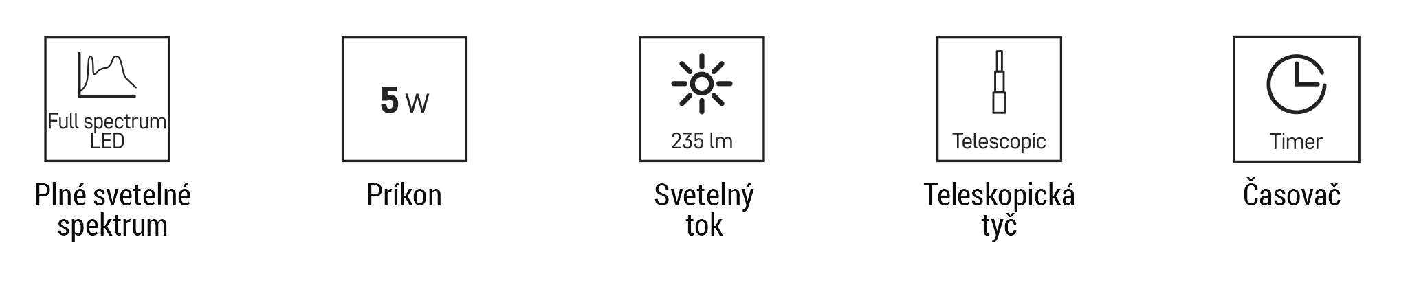 - 5 červených LED diód urýchľuje rast listov a stoniek, podporuje zakoreňovanie a stimuluje