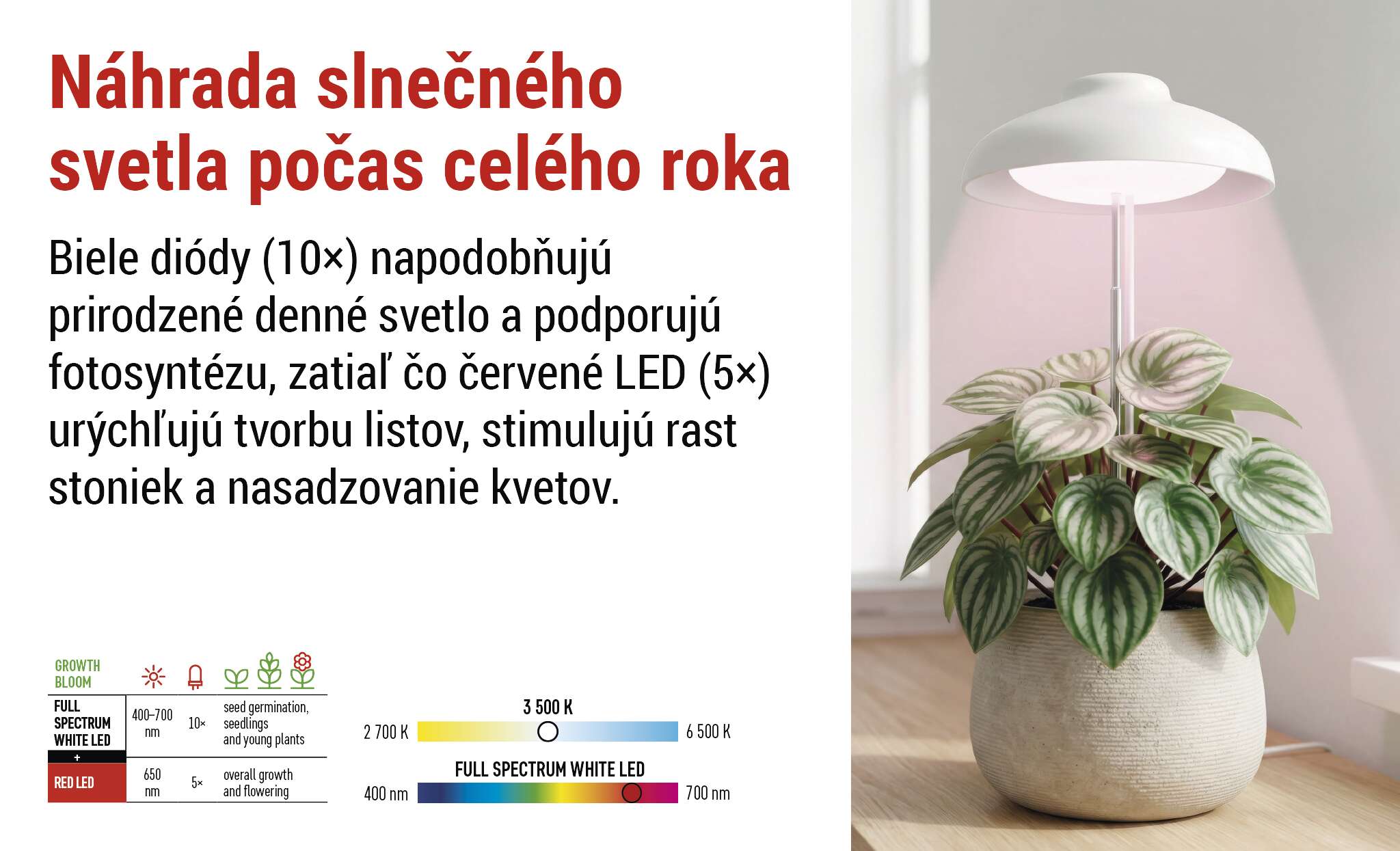 LED SVETLO S PLNÝM SPEKTROM - Napodobňuje prirodzené slnečné spektrum.