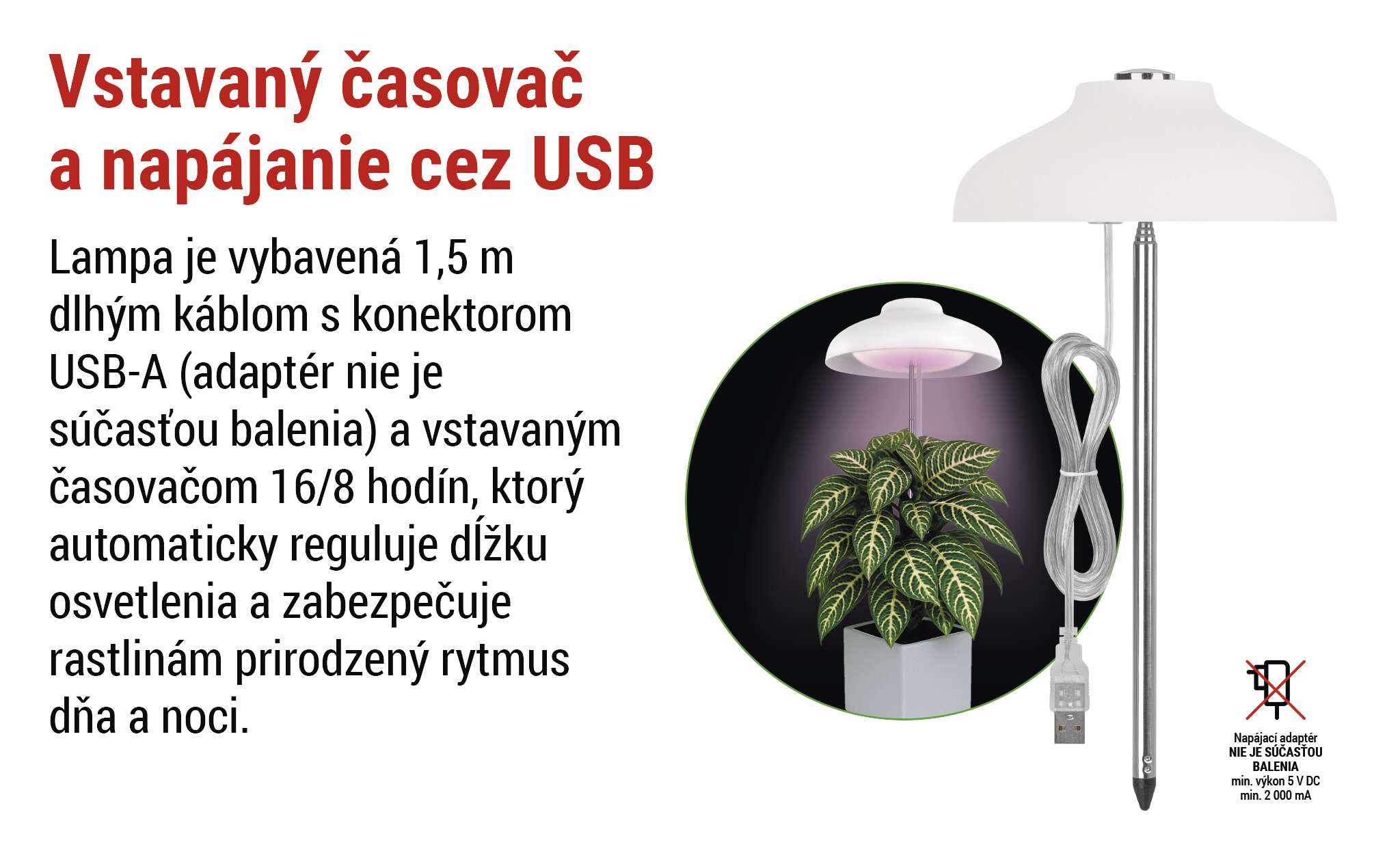 Popis produktu Emos LED GROW pestovateľská lampa 5W, časovač, biela