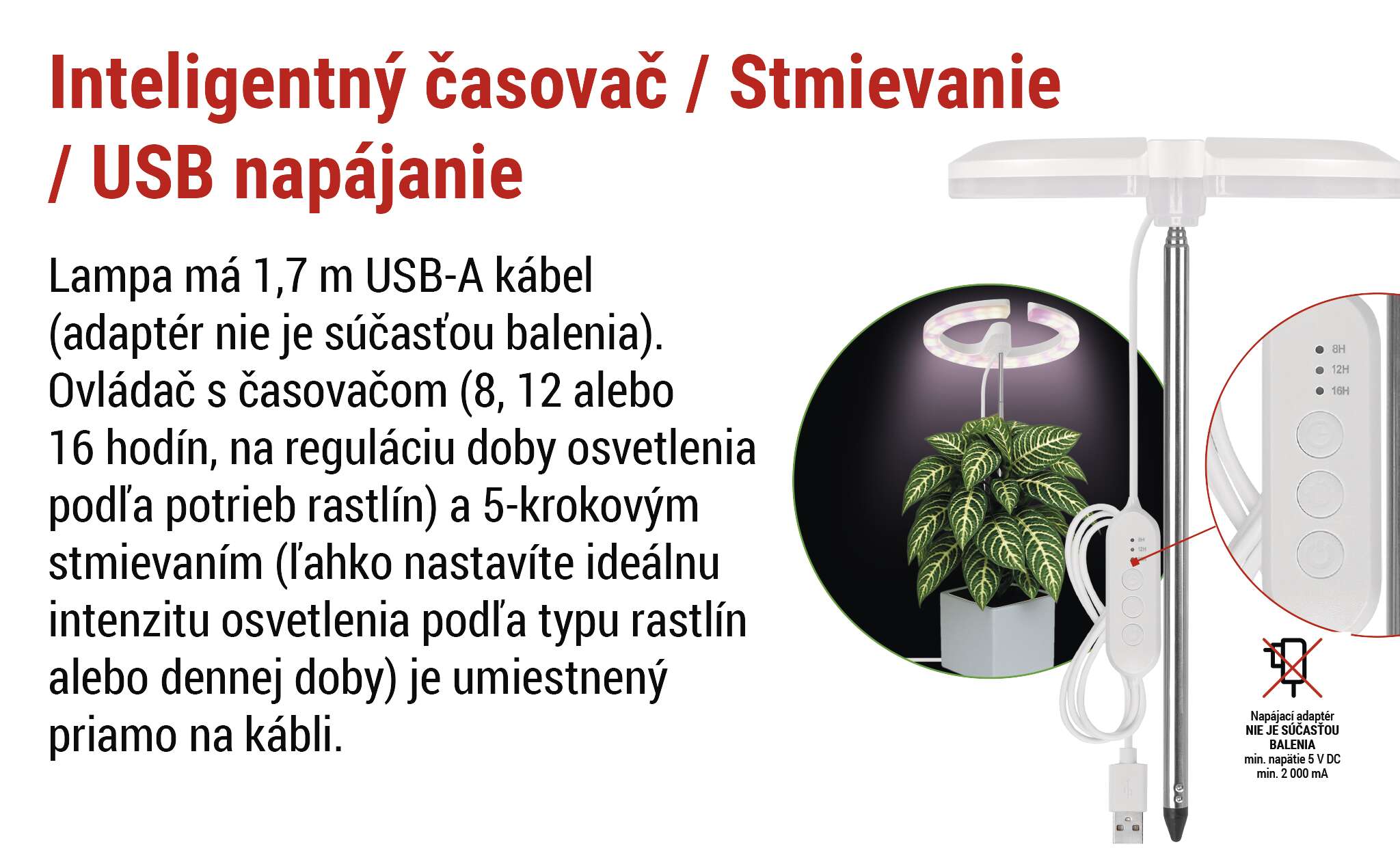 Popis produktu Emos LED GROW pestovateľská lampa 8W, časovač, stmievateľná, biela