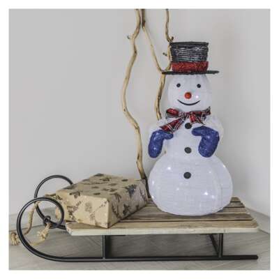 Snehuliak je rovnako úzko spätý so zimou a Vianocami ako vianočný stromček. Náš približne 60 cm vysoký snehuliak plný oblých tvarov a príjemných farieb rozžiari každý domov. Má tiež oranžový nos, rukavice a čiapku. V tme bude snehuliak svietiť chladnou bielou farbou. Dekorácia je určená predovšetkým do interiéru. Ak ju však umiestnite vonku, kde je chránená pred nepriaznivými poveternostnými podmienkami, môže zdobiť aj váš balkón.
