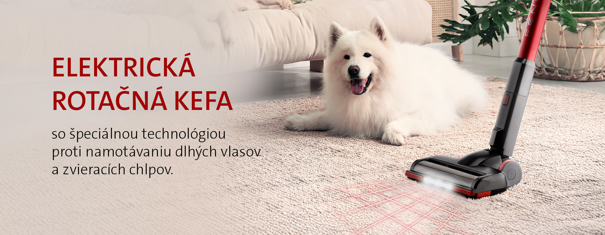 Vďaka 3 stupňom sacieho výkonu si môžete vysávač prispôsobiť presne podľa aktuálnych potrieb. Elektrická rotačná kefa je špeciálne určená na vysávanie parkiet a ďalších tvrdých podláh. Vďaka špeciálnej technológii kefy môžete dať zbohom namotaným dlhým vlasom a zvieracím chlpom.