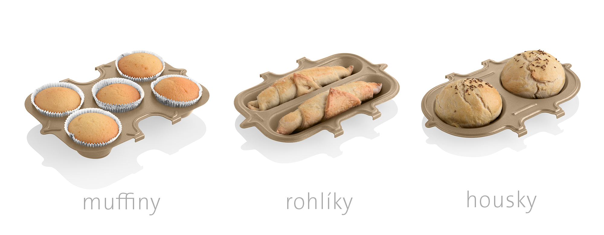 2 formy na pečenie so sklopným držadlom Forma na pečenie na rožky Forma na pečenie na žemle Forma na pečenie na muffiny Odmeriavací pohárik a lyžica |