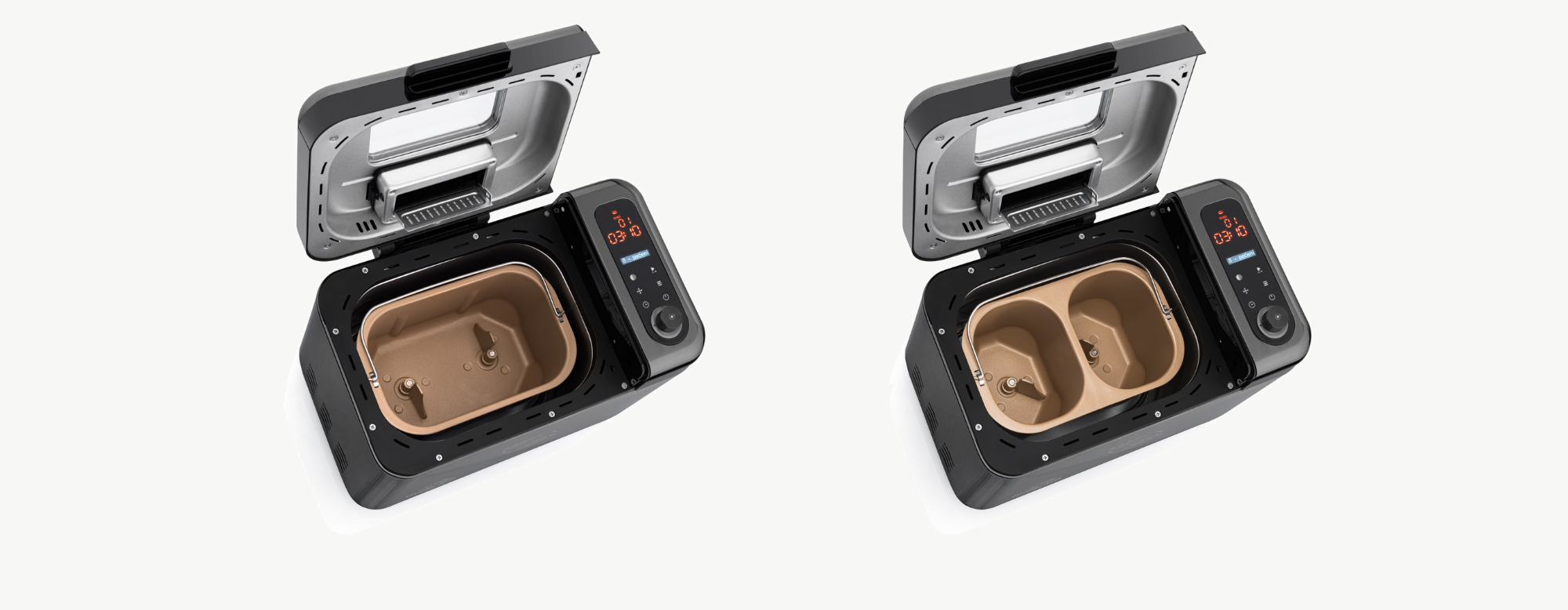 Vďaka dvom rôzne veľkým nádobám na chlieb, môžete pripraviť veľký bochník pre celú rodinu, ale aj dva menšie chlebíky, pokojne každý iný. Menšia nádoba je ideálna tiež na prípravu cesta na rožky či žemle, kedy vám stačí oveľa menšie množstvo cesta.