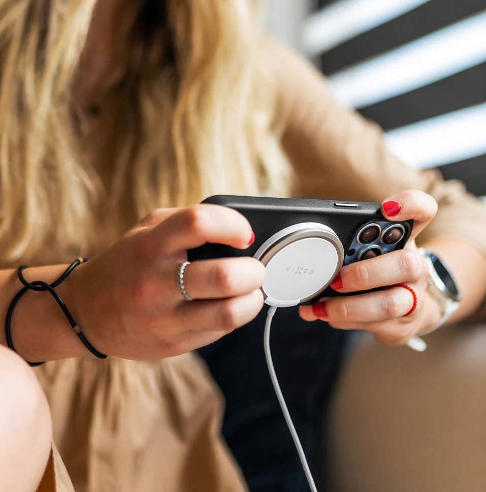 Silné neodymové magnety bezpečne pripevňujú nabíjačku k iPhone 12 a novším modelom s podporou MagSafe. Nabíjačka sa automaticky zarovná a zostane pevne na mieste aj pri manipulácii s telefónom.