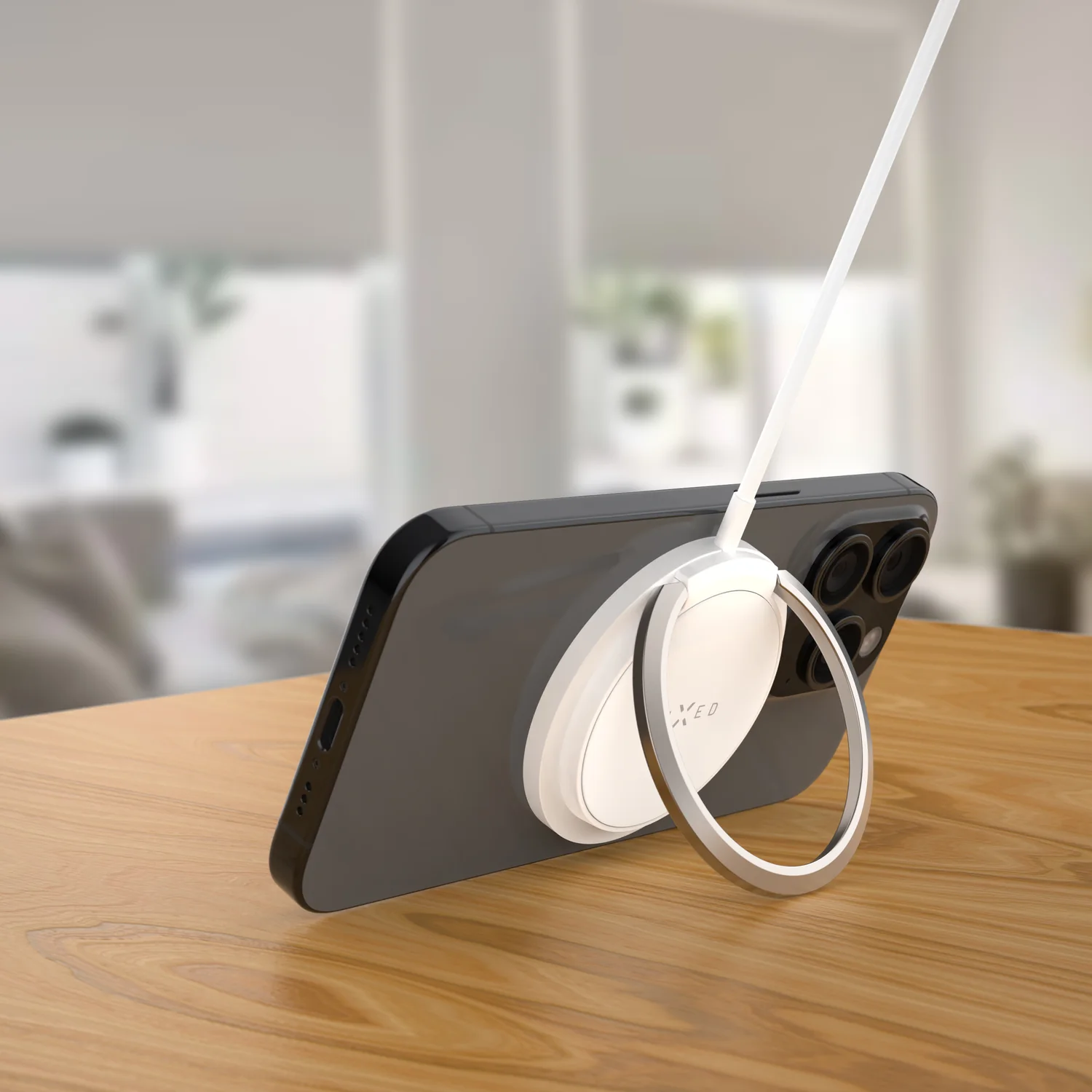 FIXED MagPad s podporou uchytenia MagSafe a stojanom, 15W, biela - bezdrôtová nabíjačka