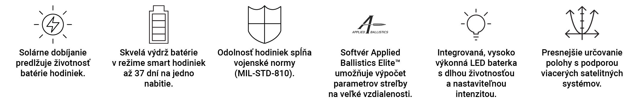 Nová generácia špeciálnej "taktickej" verzie univerzálnych športových smart-hodiniek s GPS zo série > > fénix 7X s rozšírením v podobe dostupnej aplikovanej balistiky AB Elite . tactix 7 Pro Ballistics Edition sú univerzálne smart-hodinky s GPS pre široké spektrum aktivít a praktické doplnkové použitie s ďalšími zariadeniami Garmin. Robustné púzdro hodiniek je vyrobené z kompozitných materiálov fibre-reinforced polymer, displej je krytý odolným zafírovým sklíčkom Power Sapphire™ s podporou solárneho dobíjania. Ďalšie kovové prvky sú vyhotovené z titánia s finálnou úpravou povrchu použitím technológie >DLC (diamond-like- carbon) . Zadný titániový kryt je finálne upravený technológiou > PVD coating , ktorá sa využíva napr. pri výrobe zbraní. Mimoriadne odolná konštrukcia a ďalšie parametre spĺňajú armádne štandardy MIL-STD-810G pre vysokú odolnosť voči nárazom, plameňom a ponoreniu.