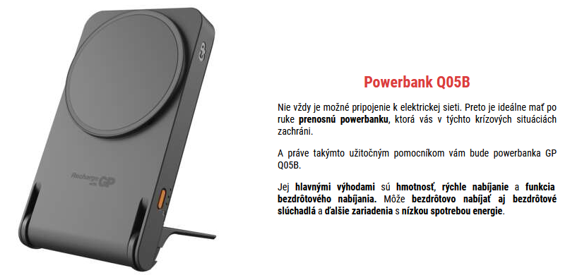 Popis produktu GP Q05B 5000mAh čierny Wireless 20W