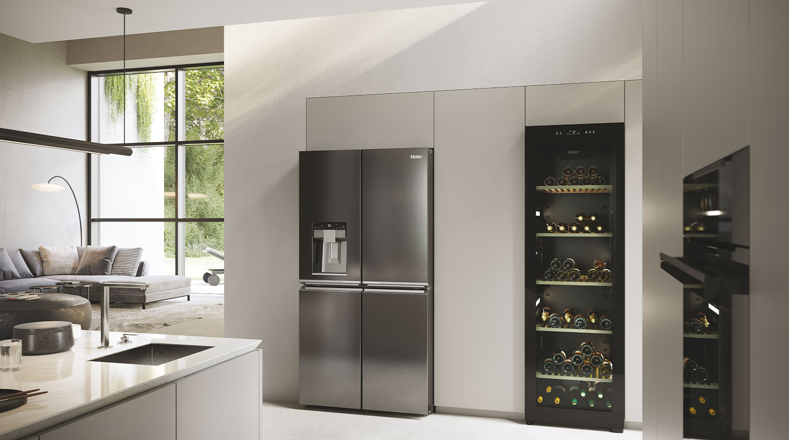 Haier navrhuje svoju 4-dverovú chladničku s bystrým pohľadom na každý detail v exteriéri aj interiéri. Rukoväte vašich viacdverových chladničiek sú bezšvíkové laserom, sú elegantné a dokonale čistiteľné. Vnútro chladničky je rovnako dobré ako vonkajšie: konzolové police umožňujú praktickejšie meniť polohu políc, pretože nie je potrebné ich úplne vyberať z chladničky a nový stojan na víno poskytuje väčšiu flexibilitu a umožňuje uložiť až 6 fliaš.