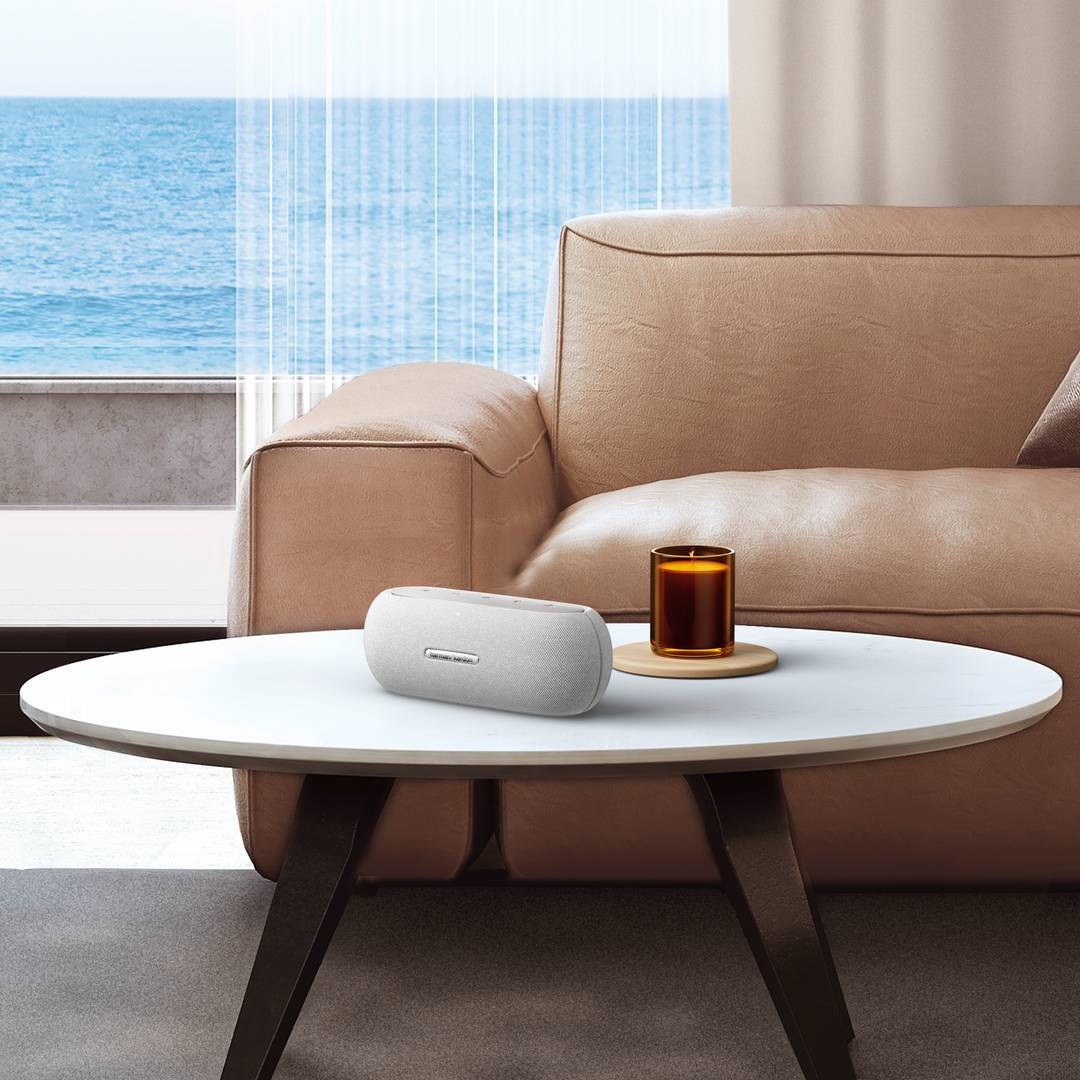V interiéri alebo exteriéri si nastavte atmosféru s dynamickým zvukom z reproduktora Harman Kardon Luna. Ponorte sa do kvalitného zvuku a silných basov reproduktora s Bluetooth.