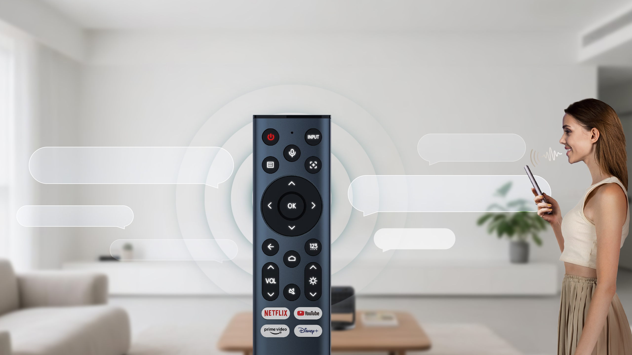 Stačí stlačiť tlačidlo, prehovoriť a sledovať – ovládajte projektor hlasom úplne bez použitia rúk pre rýchlu a pohodlnú zábavu.