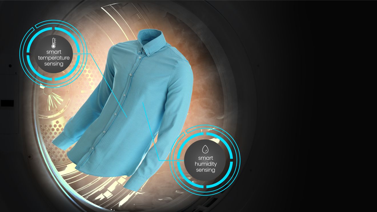 Vstavaný vysoko presný senzor, presné monitorovanie zvyškovej vody a teploty, automatické nastavenie času sušenia môže ušetriť čas a energiu, zabrániť nadmernému tepelnému poškodeniu oblečenia.