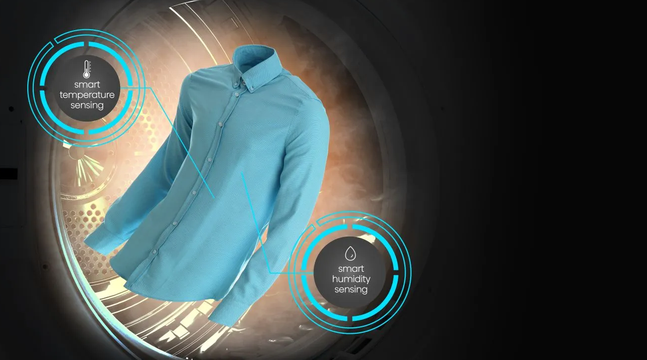 Spotrebič obsahuje dva typy vysokopresných senzorov, ktoré monitorujú zvyškovú vlhkosť a teplotu a automaticky prispôsobujú dobu sušenia. Tým šetrí čas aj energiu, zabraňuje poškodeniu teplom a zabezpečuje ideálne podmienky sušenia pre zachovanie kvality a životnosti vášho oblečenia.