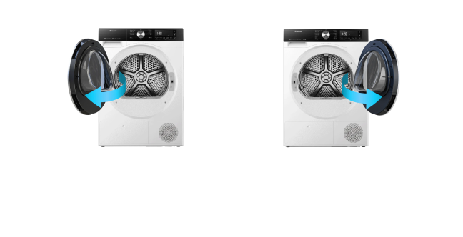 Tento spotrebič má praktické dvierka, ktoré možno jednoducho nastaviť tak, aby sa otvárali doľava alebo doprava. Vďaka tejto flexibilite si vyberiete riešenie, ktoré najlepšie vyhovuje rozloženiu vášho priestoru. Predídete kolíziám so stenami alebo nábytkom a sušička sa bez problémov prispôsobí akémukoľvek interiéru.