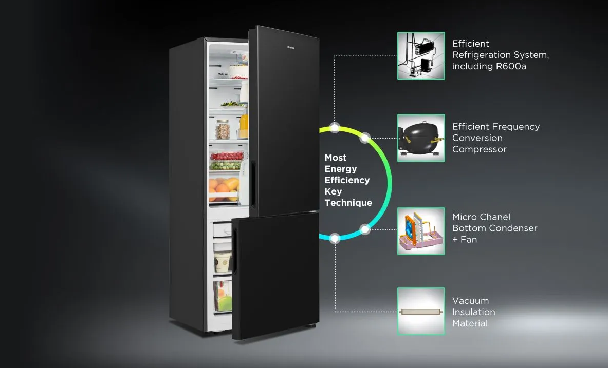 Konštrukcia bola navrhnutá s ohľadom na životné prostredie. Dôležité súčasti tejto chladničky, ako je vákuový izolačný panel, kompresor s ideálnou frekvenciou konverzií alebo účinný mraziaci systém, boli zvolené tak, aby viedli k nižšej spotrebe energie, a tým zároveň šetrili aj vašu peňaženku.