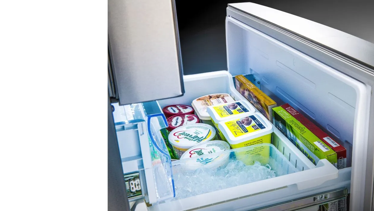 Vo veľkokapacitnom mraziacom priestore nájdete aj miesto na mrazenú pizzu. A vďaka ľahko kĺzavým jazdcom sa zásuvka ľahko vyťahuje, aj keď je plná potravín.