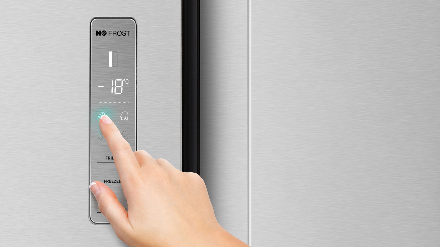 Prehľadný panel LED na prednej strane chladničky umožňuje rýchle a jednoduché nastavenie teploty chladničky a mrazničky a ďalších funkcií.