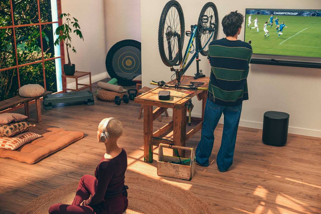 Nechcete zmeškať žiaden dôležitý zápas, ani keď ste v kuchyni a pripravujete ďalšiu dávku kuracích krídeliek. Stačí si so sebou vziať jeden – alebo oba, pre stereo zvuk – odnímateľné bezdrôtové reproduktory a budete počuť rovnaký skvelý zvuk vo filmovej kvalite, aký si vaša rodina a hostia užívajú v druhej miestnosti.