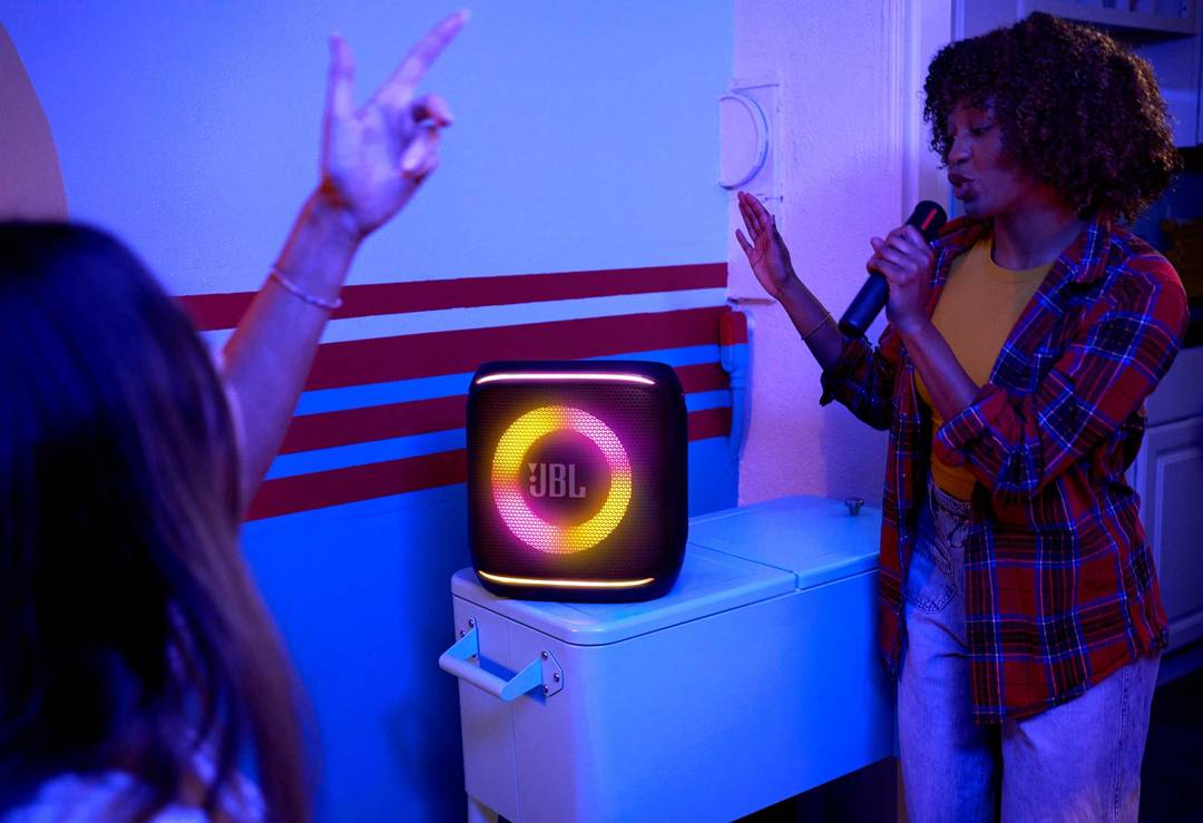 Ste pripravení spustiť šou? Chopte sa digitálneho bezdrôtového mikrofónu a staňte sa svojim vlastným moderátorom alebo hostiteľom karaoke! Môžete si taktiež prispôsobiť zvuk pomocou nastaviteľných ovládacích prvkov ozveny, basov a výšok, aby ste sa uistili, či budete znieť správne. Od otvorených striech až po preplnené pivnice, JBL PartyBox Encore 2 sa vie prispôsobiť vďaka svojej uchopiteľnej rukoväti a IPX4 dizajnu odolnému voči striekajúcej vode.