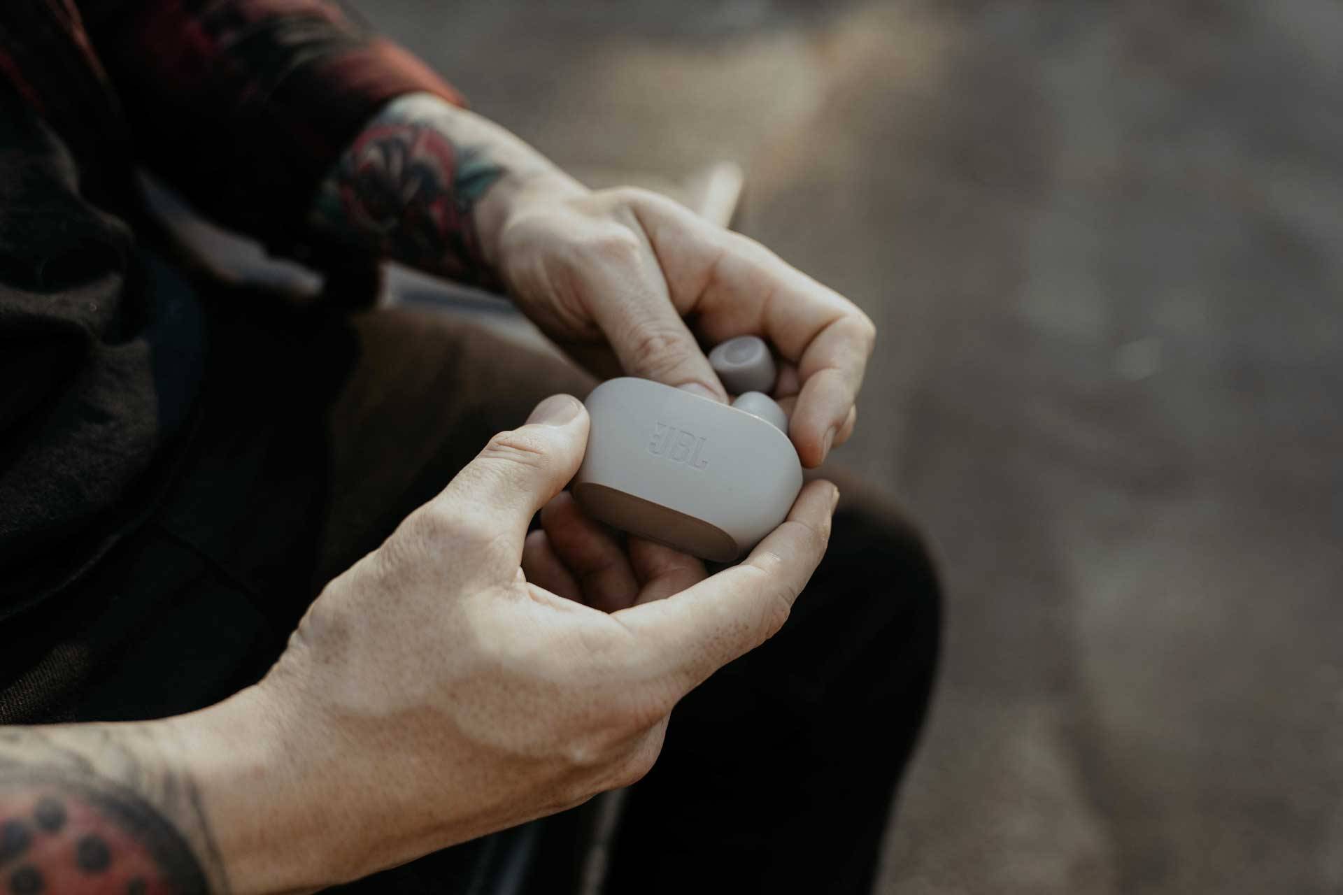 Idú tam, kam idete aj vy. Malé a ľahké slúchadlá JBL Vibe 100TWS v puzdre aj mimo neho sa ľahko zmestia do vrecka.