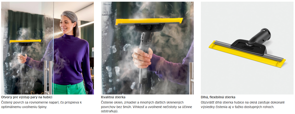 Jednoduché riešenie na čistenie sklenených povrchov parným čističom. S hubicou na okná Comfort je možné ľahko čistiť okná, zrkadlá a iné sklenené povrchy bez akýchkoľvek škvŕn. Dlhá stierka uľahčuje odstraňovanie pruhov a stôp aj z ťažko čistiteľných oblastí. Pre efektívne čistenie okien bez chémie.